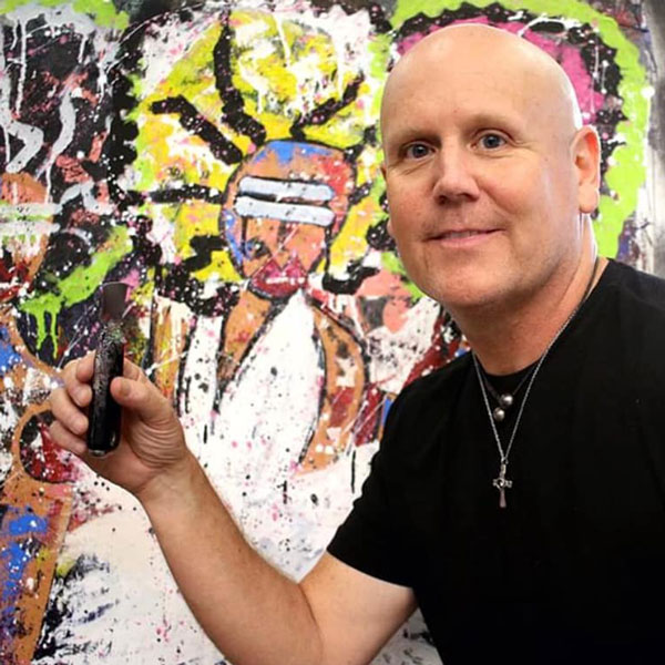 Christian Calvin—also known as 33N Art—is a popular artist from Tennessee well known for his abstract paintings and mixed-media art that play with the conventions of Pop Expressionism.