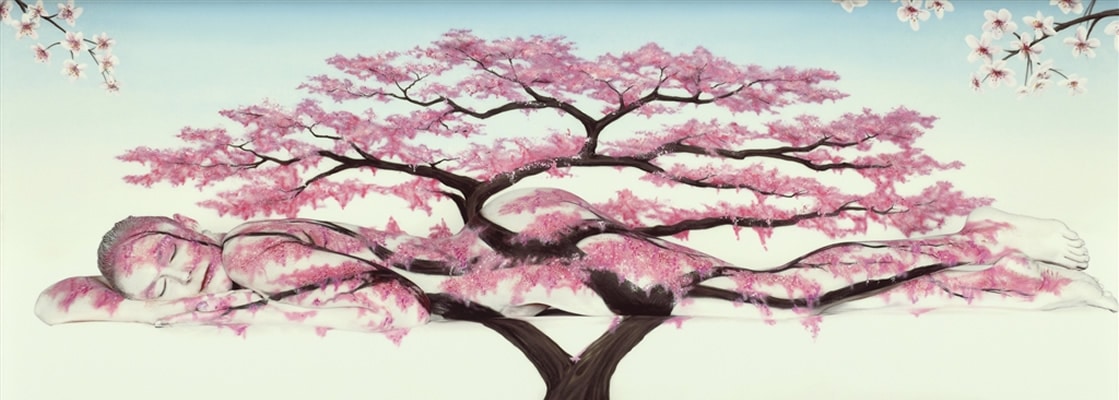 Some of the works incorporate a backdrop that Tracy creates by hand to complement or complete the desired image. Both the bodypainting and the backdrop are photographed at the same time, removing the need to splice them together. Tracy’s intention is to create images representing a single surreal moment captured in a real work of art, often causing the viewer to pause and question what is and isn’t living.