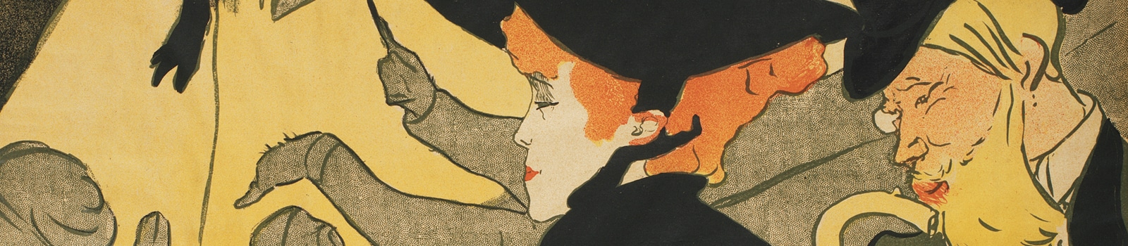 Henri de Toulouse-Lautrec was born at the chateau de Malromé near Albi, Tarn in France of an aristocratic bloodline – descendants of the Counts of Toulouse and Lautrec and the Viscounts of Montfa. Henri suffered from a number of health issues, mainly due to his family’s inbreeding (his parents were first cousins). He was also seriously injured as a youth – his fractured left and right thighs were stunted permanently – and his mother sent him to the thermal baths at Amélie-les-Bains in hopes of remedying his health issues. His artistic talent, however, thrived. At a very early age, Henri proved he had a talent for drawing horses, taking informal lessons with his father’s friends. In 1882, he began to study art seriously in Paris, and by 1885, had a studio in Montmartre. He exhibited at the Salon des Independants in 1889 and with Les XX in Brussels, and in 1891, his first posters brought him immediate recognition.