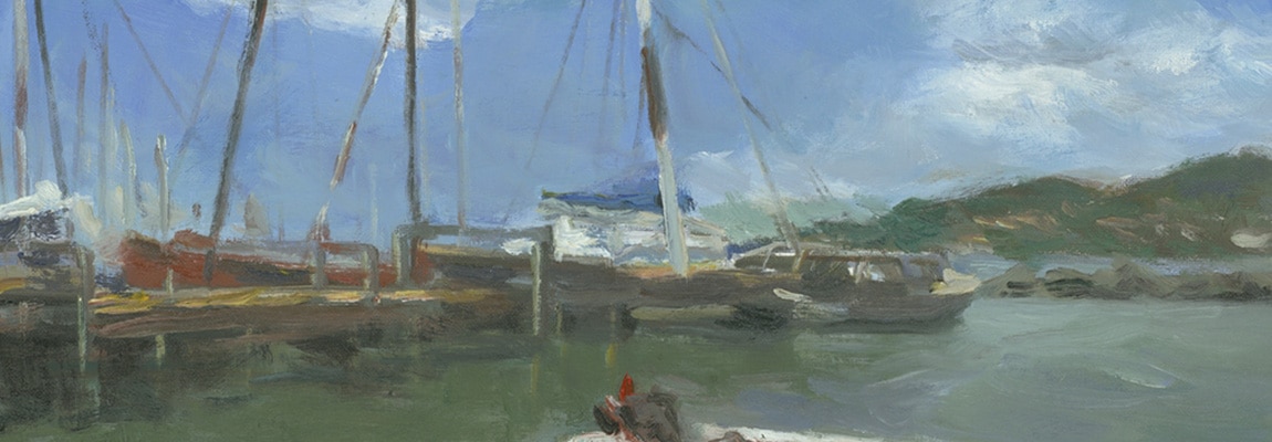 Chen began to paint from what inspired him. He explains that painting is just like life. Like a child on the beach, trying to squeeze a handful of sand, you must relax. He says that if you squeeze too tightly, the sand will fall to the ground. Chen realizes he must relax and let his imagination create.