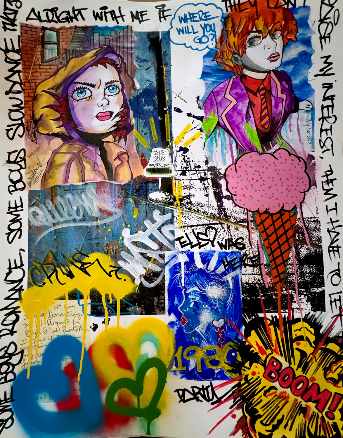 A protégé of Andy Warhol’s illustrious studio collaborator Ronnie Cutrone, Paredes early on made his name as a graffiti writer in his native New York, then made the transition to establishing himself as a Pop artist with his own eye-catching graphic style that delivers sexy characters and action figures in vibrant colors and crisp outlines. You can see the graffiti foundation in such paintings as Love Story, where he imitates the effects of spray paint on city walls with just a touch of reference to such artists as Haring and Banksy. He is best known for his take on the Japanese anime aesthetic, including the voluptuous girls with their come-hither looks and martial arts fighters who burst into action. These irresistible characters include Pulgha, a magical flea, and her friends, who have been turned into a branded, animated sit-com series. Paredes has an appetite for cutting-edge innovations in materials and media, moving easily between the painter’s easel, the illustrator’s desk, the animator’s screen and the sculpture studio.