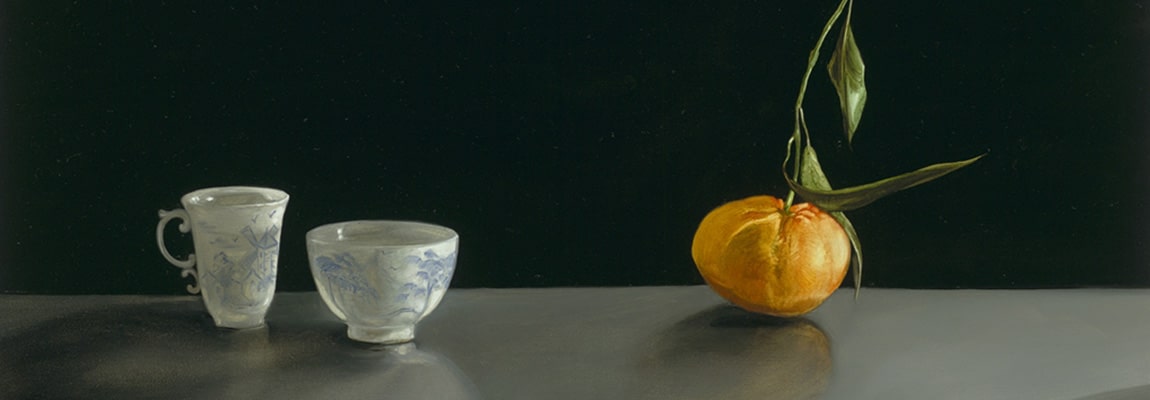 “Antique Coffee Cups and Manderin” (2017), Rachael Robb