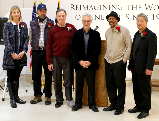 The five finalists attended a finale event and exhibit at Park West Gallery. Left to right: Weatherly Stroh, Pat McManus, Victory Pytko, Park West Gallery’s Morris Shapiro, Henry Heading and Kim Fujiwara.