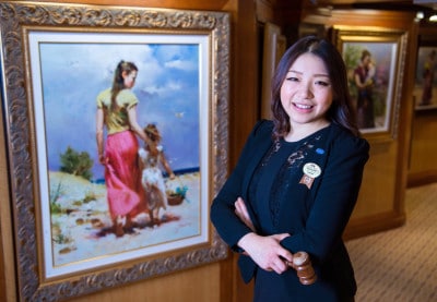 Rosalind: The ports that we get to visit – Kagoshima, Osaka, Nagasaki, Jeju and Busan – are exciting and exotic. There’s an immense amount of historical and cultural heritage for you to explore ashore. The cruise line has altered the onboard cuisine and entertainment to cater to the needs of our Asian clientele. Our guests experience a refreshing fusion of Eastern and Western hospitality. The best part? You get to come to our bilingual art auctions hosted by me and meet the art team!