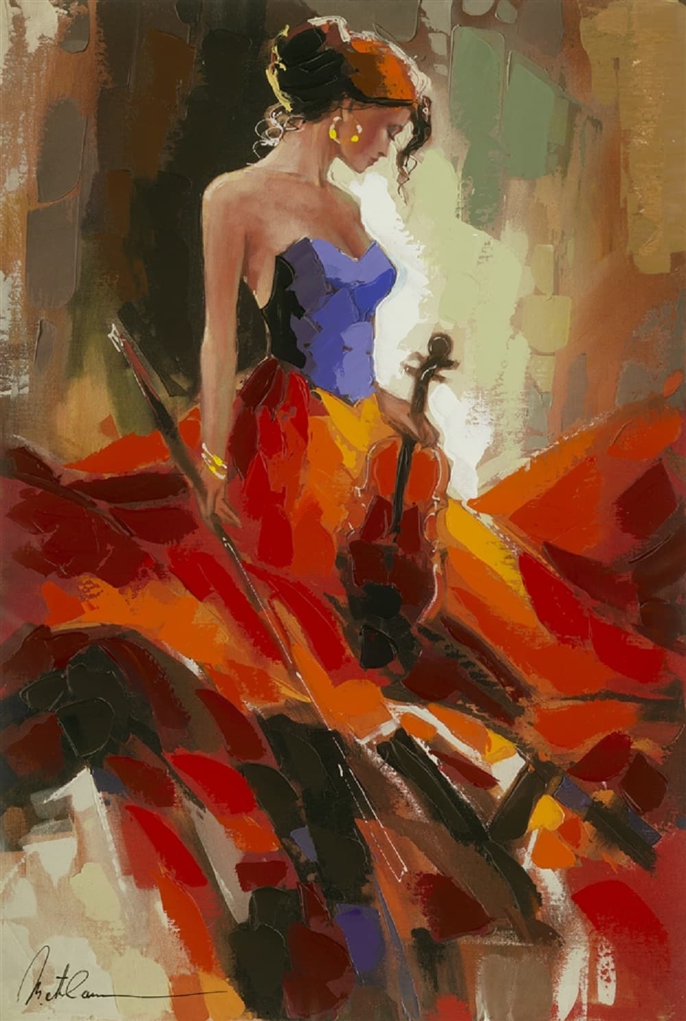 In addition to a love of art, Metlan’s mother was a violin player. As such, Metlan expresses the nostalgia of his childhood and love for his mother through the portrayal of musical women.