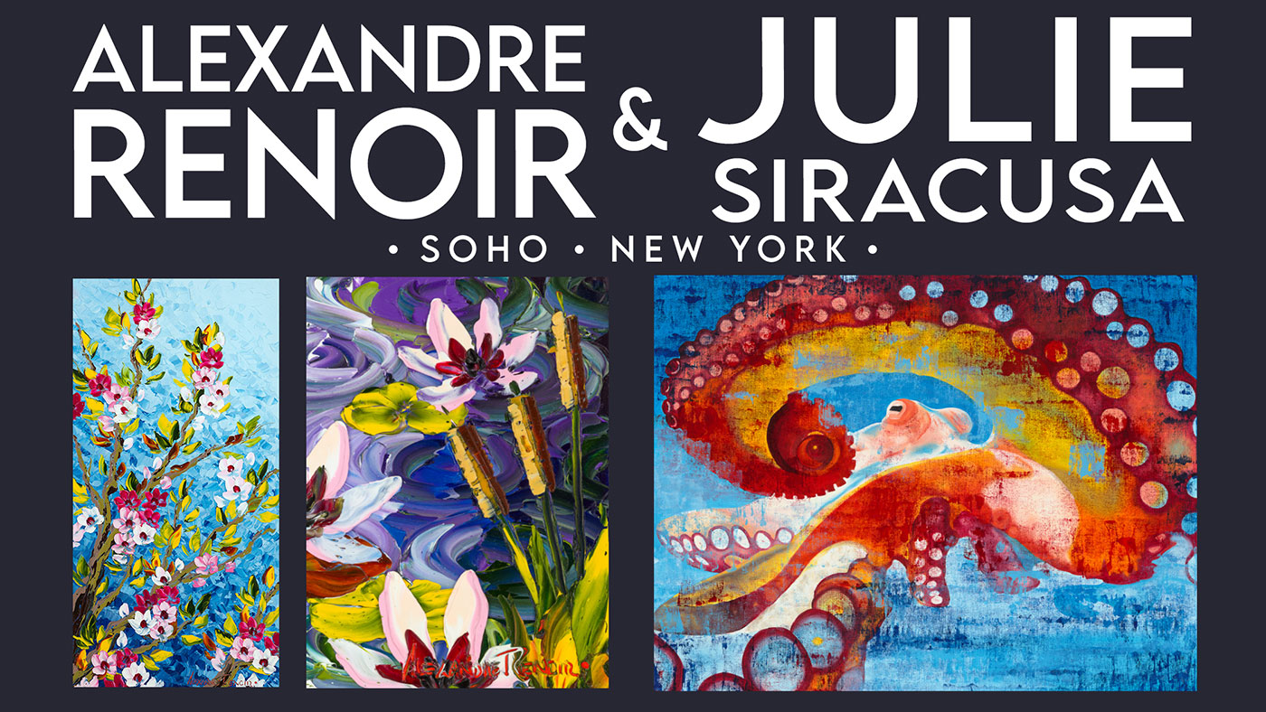 Don’t miss this opportunity to experience the unforgettable exhibit of Julie Siracusa and Alexandre Renoir artwork in NYC. This free-to-enter exhibition also provides the chance to stand before artwork by some of the most famous names in the history of art, like Picasso, Dalí, Miró, and Pierre-Auguste Renoir, alongside other contemporary giants such as Michael Godard, Kre8, and Mark Kostabi.