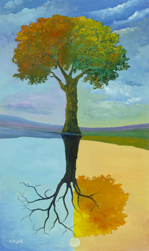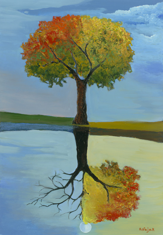 Najar says these works are among the first in his oeuvre that venture into the abstract, dancing the line between dream and reality. Najar says the idea originated when viewing a large tree outside of his studio. As Najar would paint, he noticed the tree changing throughout the four seasons. Through this observation, Najar saw a truth.