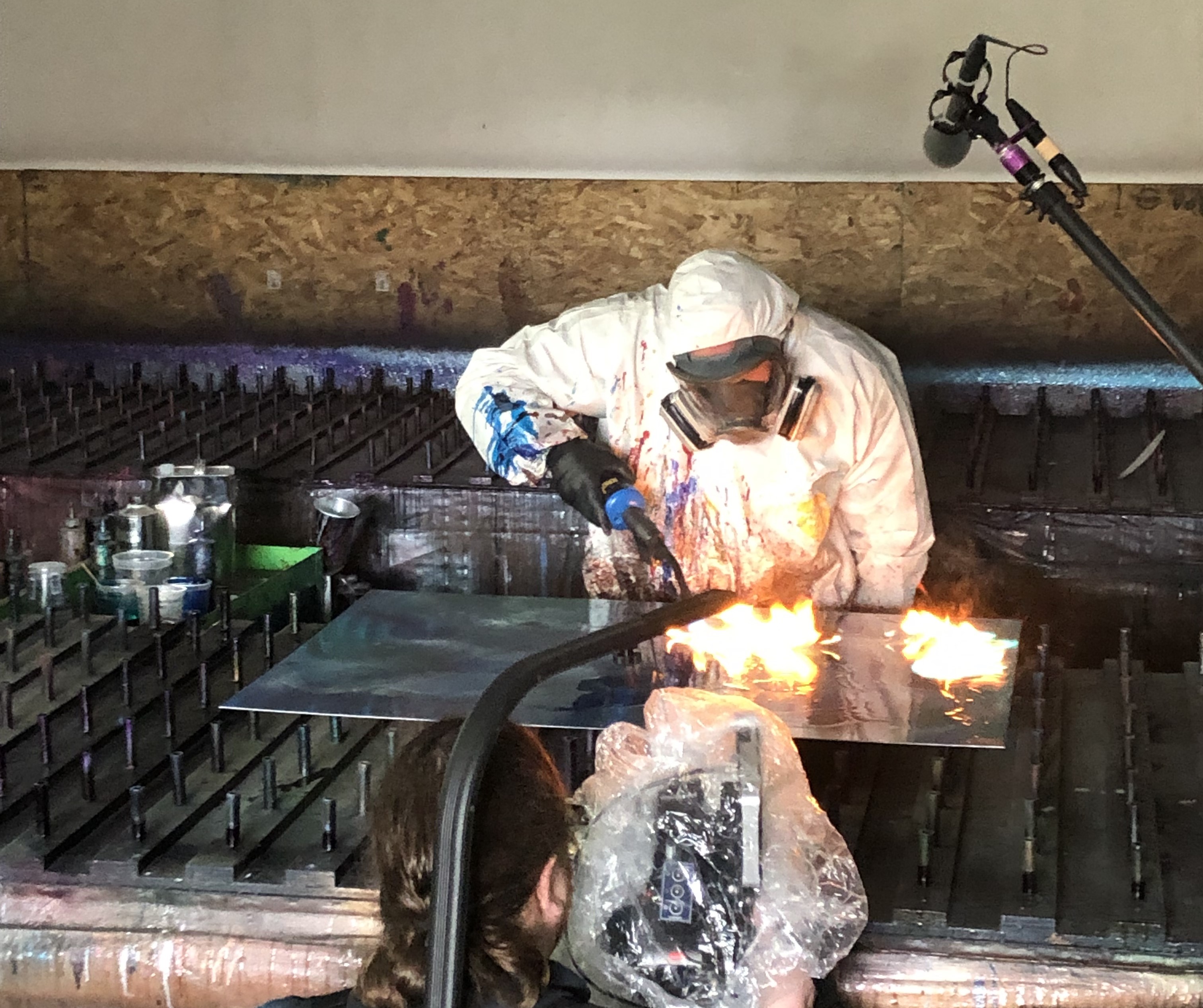 This artist leans into the stressors of modern life by putting extreme stress on his artwork through the innovative use of fire and freezing temperatures. He feels that he is simply a conduit when painting and that something greater is guiding the movements to create his magnificent artwork.