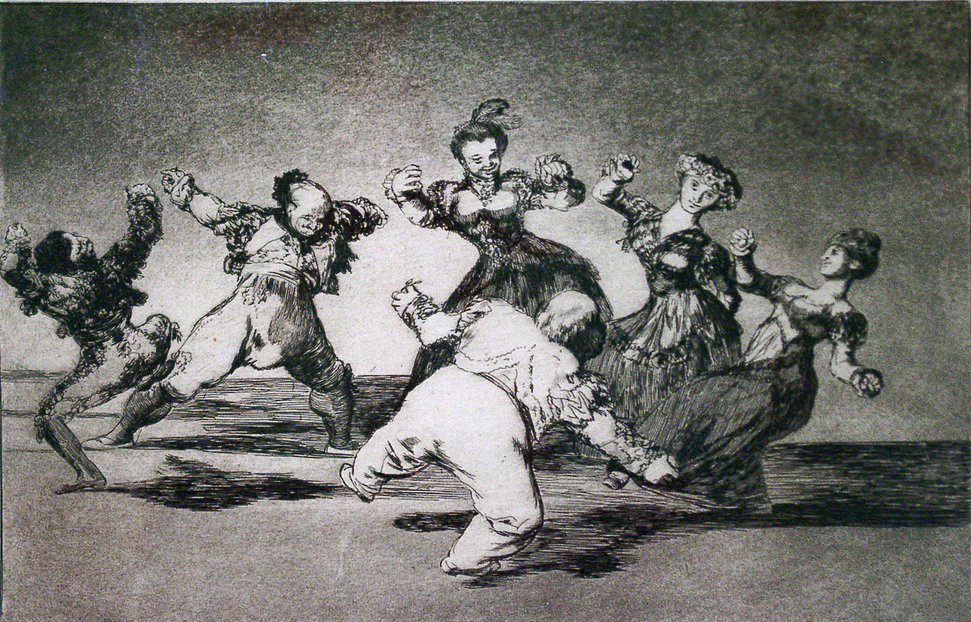 Created between 1815 and 1824, during a last lapse in his health, Los Disparates was Goya’s last major project in printmaking and is considered his best for the virtuosity in engraving, control of color tonalities and use of aquatint and drypoint. Because of its highly personal nature, this series is also considered the most difficult to understand and interpret. Each image is a cryptic visual of various proverbs.