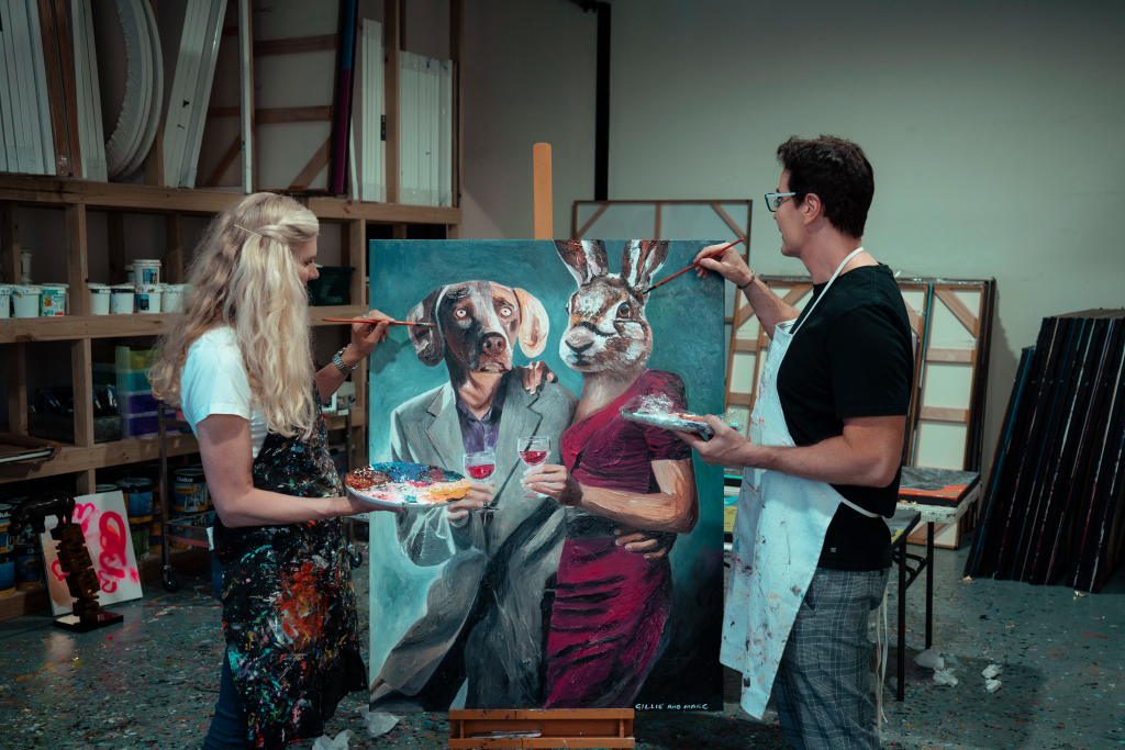 Central to Gillie and Marc’s artistic narrative are their beloved characters, Rabbitwoman and Dogman. These anthropomorphic figures represent the tale of two opposites finding harmony and love amidst their differences. Their story transcends boundaries, resonating with audiences of all ages and backgrounds.