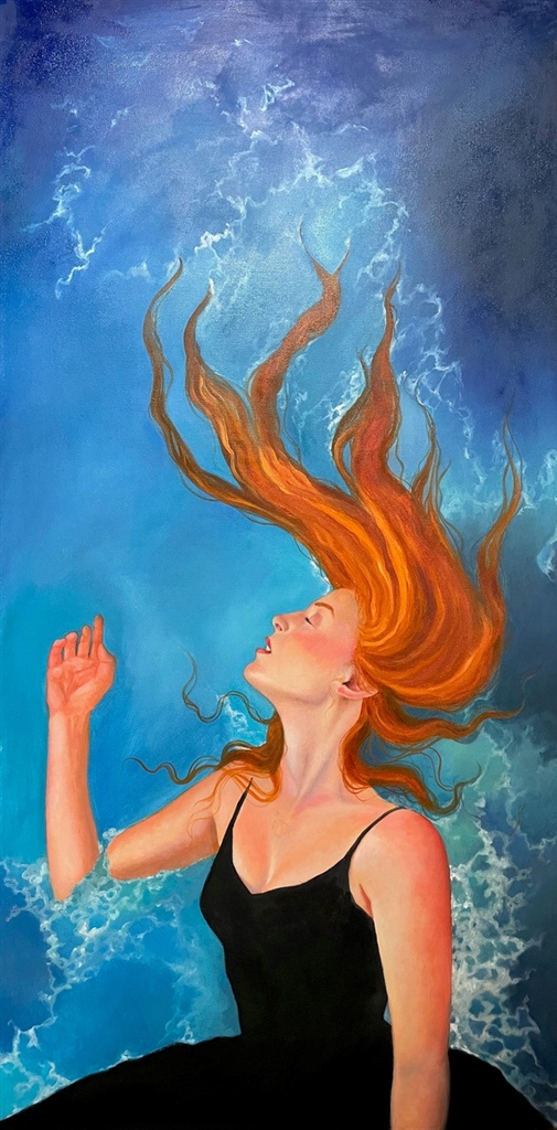 Her final studio painting, titled “Awakened,” sold after several rounds of intense competitive bidding, and Stimmell was still finishing it as it sold on Sunday night. Stimmell noted that the paint was still wet on the canvas as the final gavel came down for “Awakened.”
