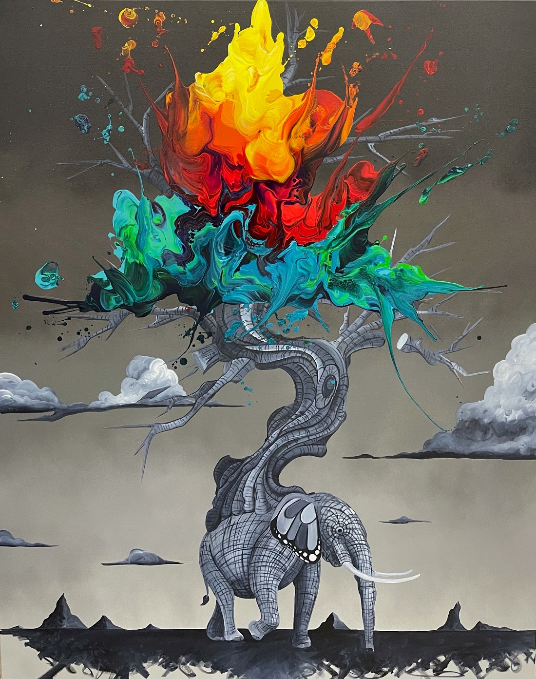 However, Kre8 did more than just break his record for most sold-out shows. During the online auction weekend, he also broke the record for the highest price ever paid for one of his paintings at auction—his painting “Rooted in Power” sold for $65,000.