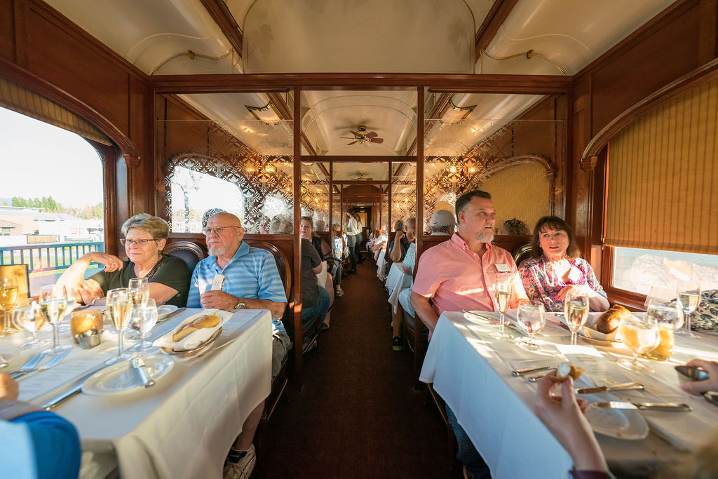 Every night, the artists and guests were treated to entertainment and some truly exceptional excursions. On Friday, they boarded the legendary Napa Valley Wine Train, where they sipped wine, mingled with artists, and enjoyed a multi-course meal as they watched the gorgeous Napa scenery roll by from an exquisitely restored vintage rail car.