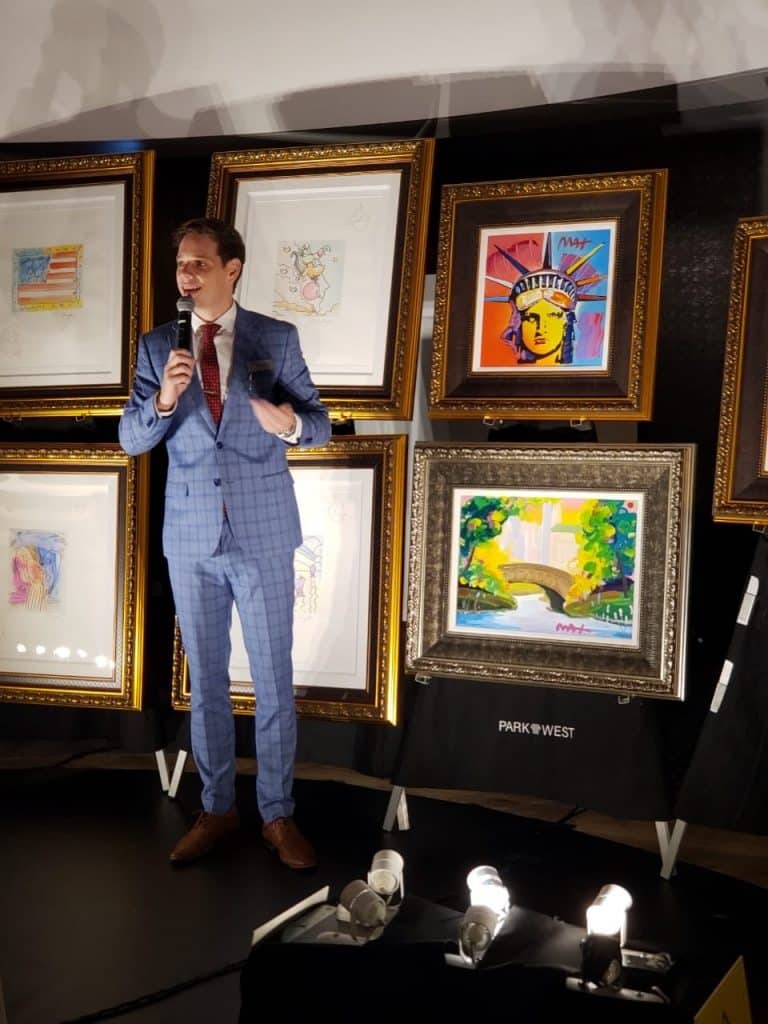 Morne: On my very first cruise as an art auctioneer, I had a client on board who collected four Peter Max artworks from me, and two of those were part of Max’s 9/11 suite. What made it really special was that the lady was completely blind. She sat through my auction and the story behind the Peter Max artworks moved her so much and she realized the significance of his work. That is when I realized that there is so much more to art than just aesthetics.