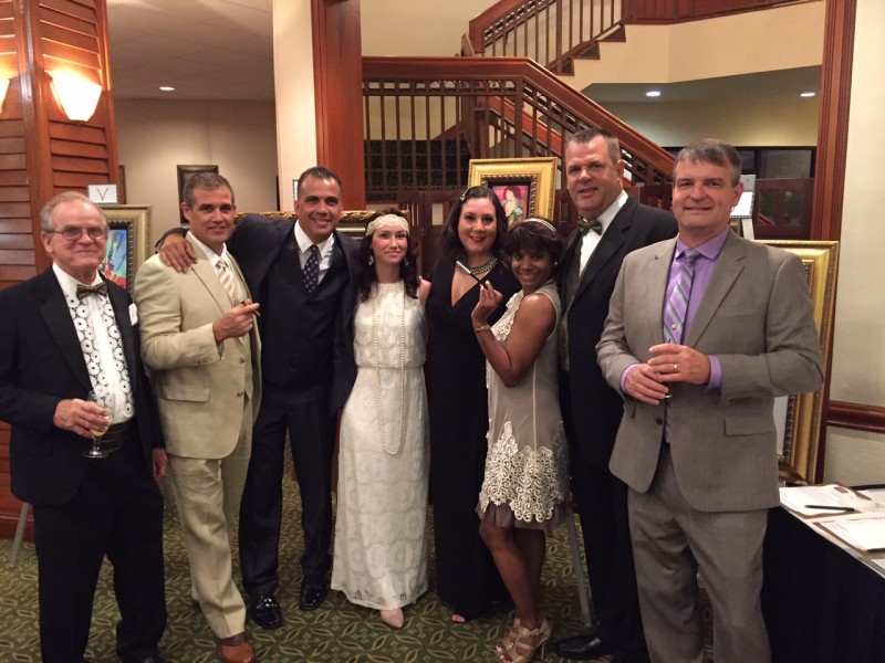 Park West Gallery co-sponsored a “Great Gatsby” soiree to support scleroderma research. From left: Jerry Lance, president of the Southeast Florida Chapter of the Scleroderma Foundation; John Karay, Park West Gallery vice president of operation and board member of the Southeast Florida Chapter; Luis Navarro, Park West plant manager; Angela Bishop, Park West fleet manager for Holland American Cruise Line; Regla Diaz, Park West fleet manager for Norwegian Cruises Line; Camille Black, Park West executive assistant; Mike McHorney, Park West fleet manager for Princess Cruises; and Todd Cummings, Park West IT. Photo courtesy of John Karay.