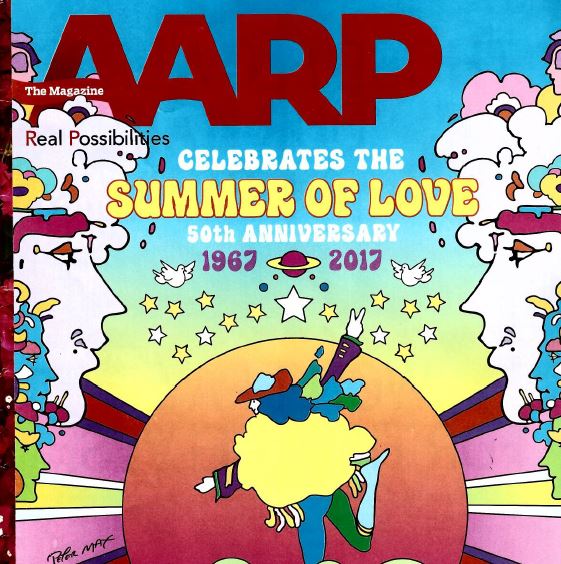 The Summer of Love was the token counterculture experience in America. Thousands flocked to the Haight-Ashbury neighborhood of San Francisco to throw themselves into a community-driven lifestyle, experimenting with new ideas, and meditating in large groups. This generation added a new fold to the American canvas. The summer marked a cultural shift where progressive thoughts and ideals blossomed. To commemorate the iconic summer, AARP chose the perfect artist for the job.