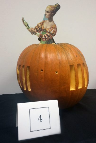 A pumpkin that pays homage to “Time to Be a Queen” by Absurdist artist Michael Cheval.