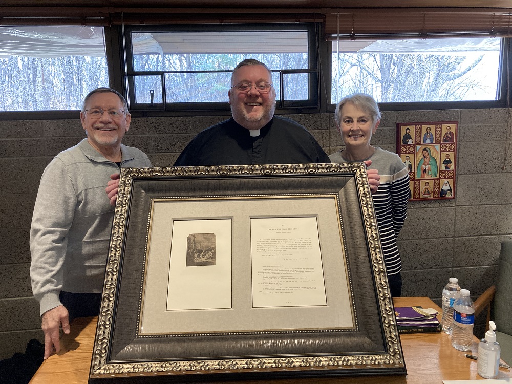 Scott and Terry Jurek present “The Descent from the Cross” to Fr. Tony O’Neill at St. John Neumann in Minnesota