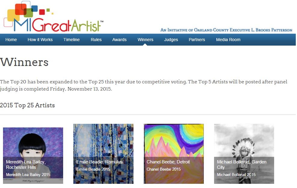 Public voting for the MI Great Artist online competition has ended, and 25 semi-finalists from around Southeast Michigan will vie for the top five spots.