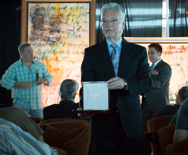 There are some images that point directly to the identity of Detroit-area abstract painter Tim Yanke – Native American headdresses, buffalo and a multitude of others that capture the essence of the South West. His most iconic and popular image – Dragonfly* – seems to resonate with collectors on many levels. Responding to the personal connection many have with it, the artist created a unique piece of wearable art depicting that image – recently revealed at a Park West Gallery VIP art cruise.