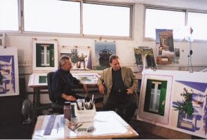Igor Medvedev and Park West Gallery Founder and CEO Albert Scaglione at Romi-Shaked Levan studio in Israel in 1999