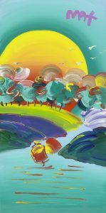 Acrylic painting on canvas from the Peter Max Studio. Hand-signed in pigment upper right by the artist.