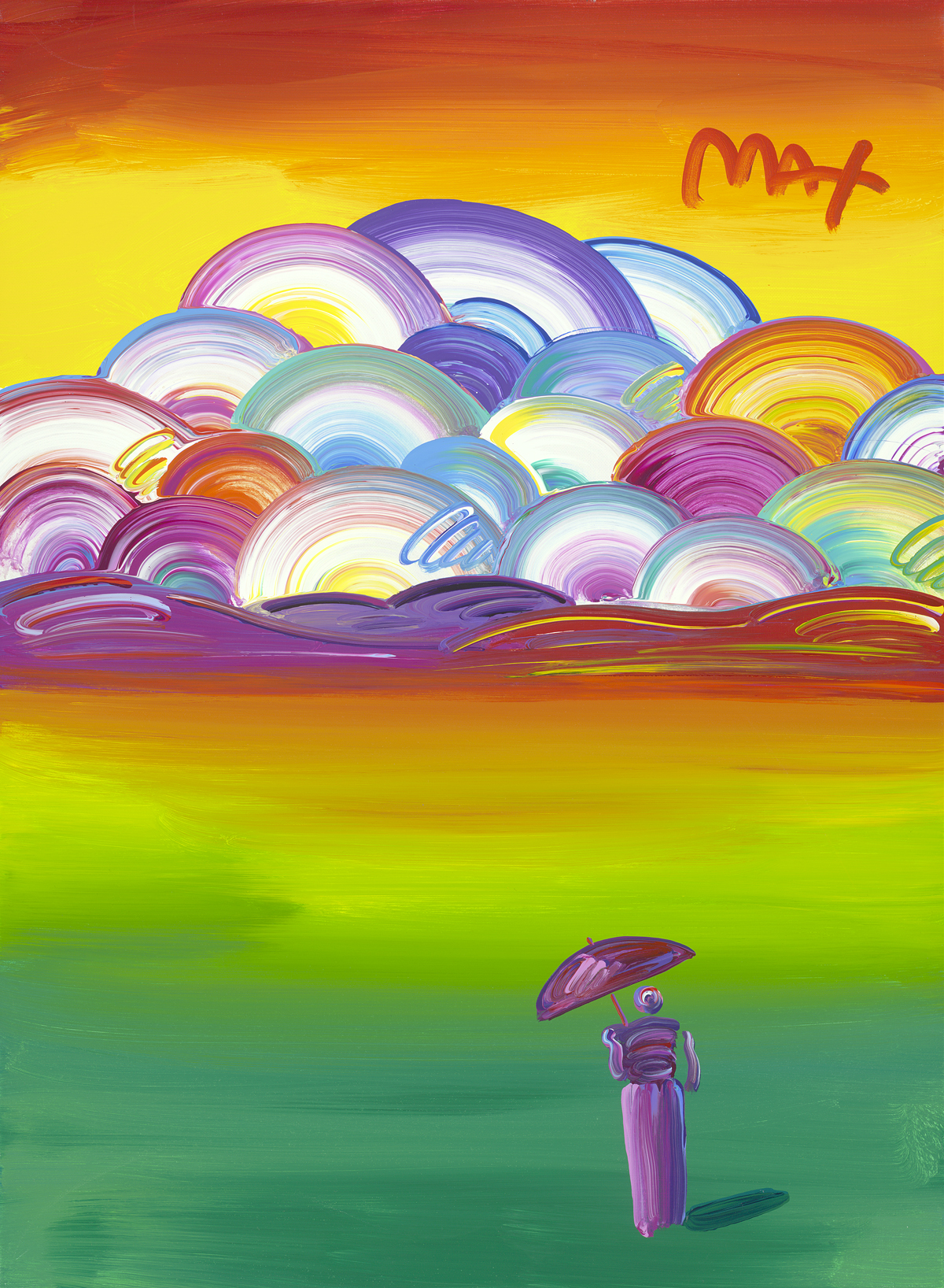 Acrylic painting on canvas from the Peter Max Studio. Hand-signed in pigment upper right by the artist.