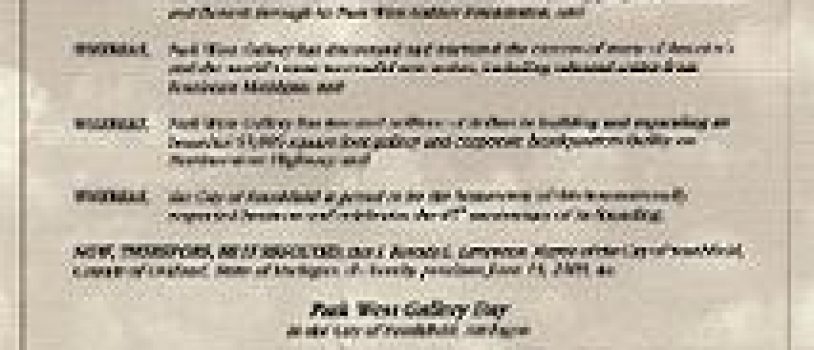 On June 15, 2009, during a City Council meeting, the Mayor of the City of Southfield, Brenda Lawrence, officially proclaimed it “Park West Gallery Day"